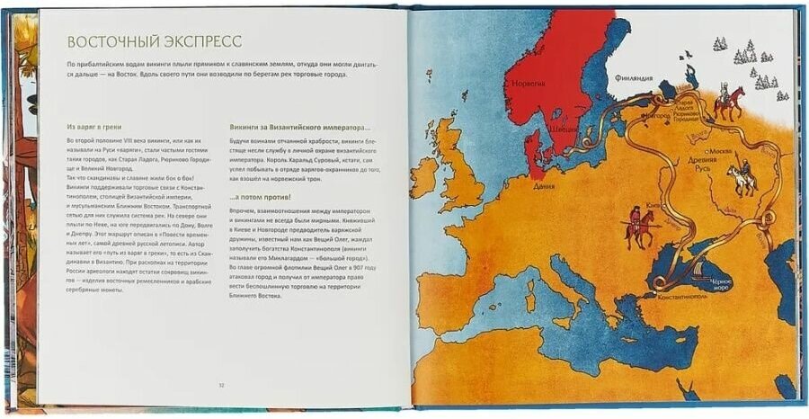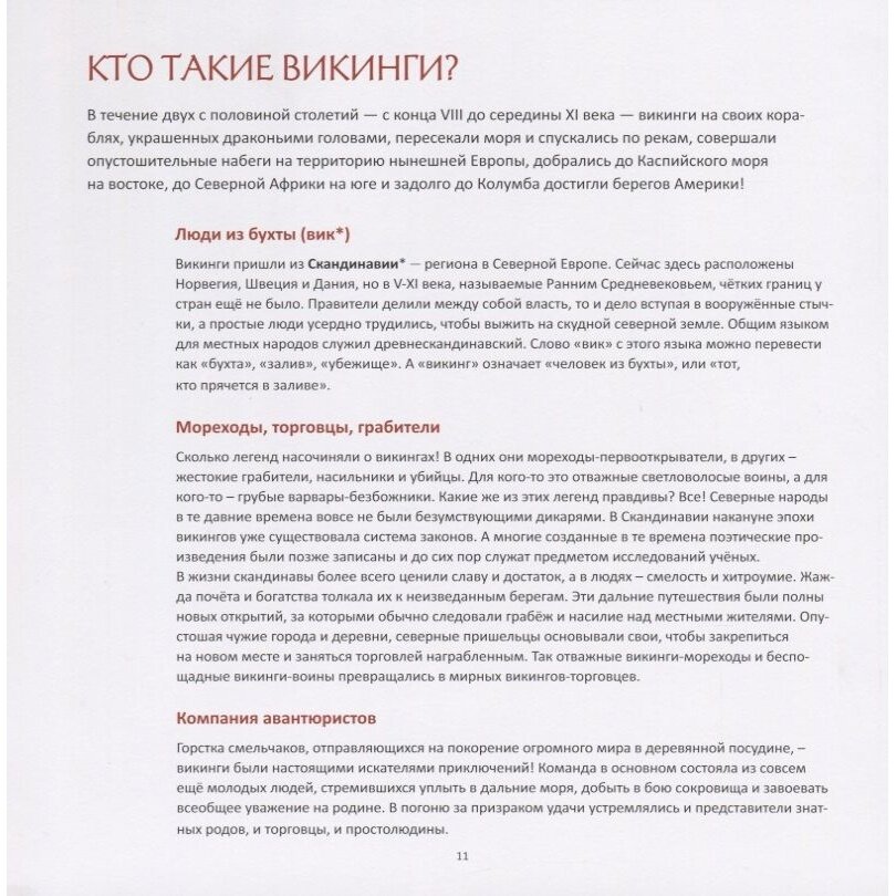 Взяли в подарок на девятилетие сыну. Иллюстрации интересные. Имеются карты. Информации много и она довольно плотная. При получении книга оказалась тоньше, чем ожидали, но шрифт не крупный, текста много, как и иллюстраций, содержательно качественное издание. Это не художественное произведение. Скорее научно-популярное. Своего рода справочник по истории викингов. Кое-что почитали вслух (родители), что-то порассматривал, немножко почитал, выборочно. Для начальной школы рановато (для самостоятельного чтения). Хотя в целом для мальчиковой библиотеки хорошее приобретение. Дорастет.