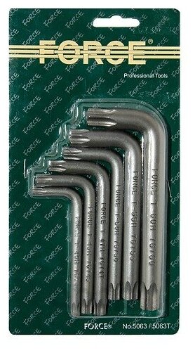 Набор Г-образных ключей с звездочек FORCE Т40-Т60 6 предметов предназначен для монтажа и демонтажа резьбовых соединений с шлицем Torx. Ключи имеют Г-образную форму и изготовлены из прочной стали. В наборе 6 ключей различных размеров.