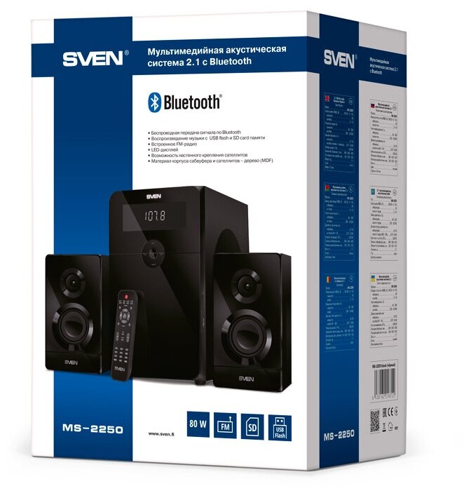 - Обзор акустики 2.1 Sven MS-2250, которая играет музыку с флешек и по Bluetooth
