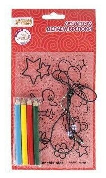 | Состав набора | лист с контурным рисунком из полимерной бумаги - 1 шт., цветные карандаши - 4 шт., комплект с украшениями, нить, брелок |