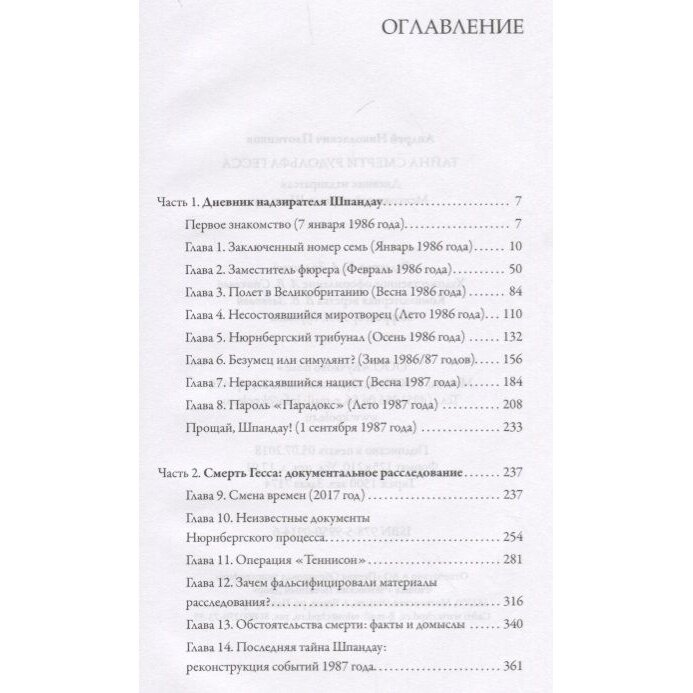 Прекрасная книга, особенно для людей пылких и фанатичных, по причине чего мне и пришлась по душе. К сожалению, достаточно "Воды" вроде сменок надзирателей предоставляющих из себя текст пришли/ушли, но это терпимо. Да, конечно мне бы хотелось видеть больше личных историй и моментов, но учитывая, что книг по Гессу в целом единицы, довольна покупкой)
