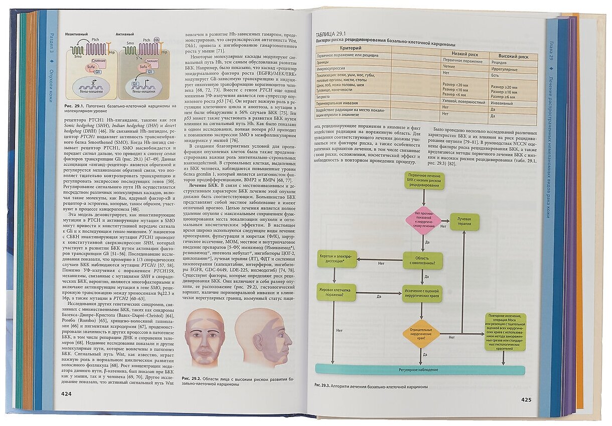 Раздел, посвященный хирургическим принципам, включает информацию о поверхностной анатомии лица, головы и шеи, предоперационной подготовке, анестезии, технике асептики, антибиотикотерапии, лечении ран и ведении пациента в послеоперационном периоде. В разделах по хирургии кожных покровов пошагово описаны различные типы хирургических процедур, иллюстрированные схемами и фотографиями. Представлены практически все известные варианты пластического замещения дефектов. Даны подробные сведения по патофизиологии, фармакологии, бактериологии, вирусологии и др. Авторы выходят далеко за рамки привычных профессиональных понятий, и, работая с данной книгой, врач может безошибочно оценить степень своей эрудиции и компетентности. Ознакомившись с особенностями специальности "Дерматология" в США, читатель, вероятно, с удивлением найдет много отличий от понимания этого раздела медицины в России.