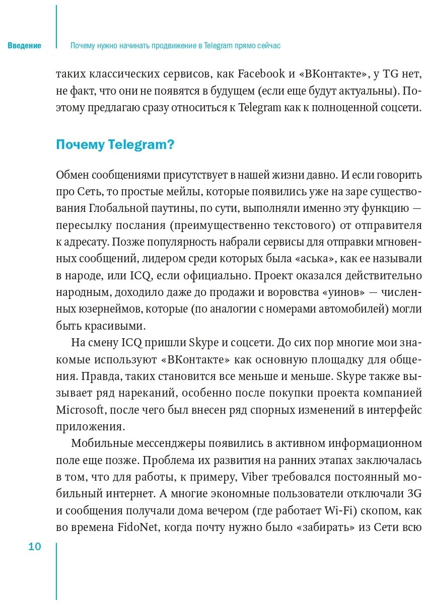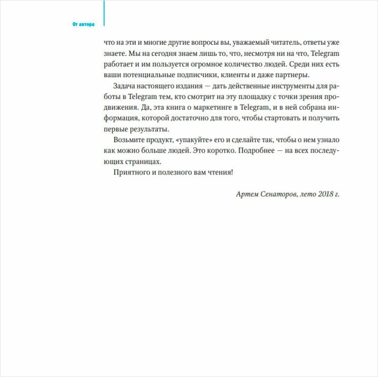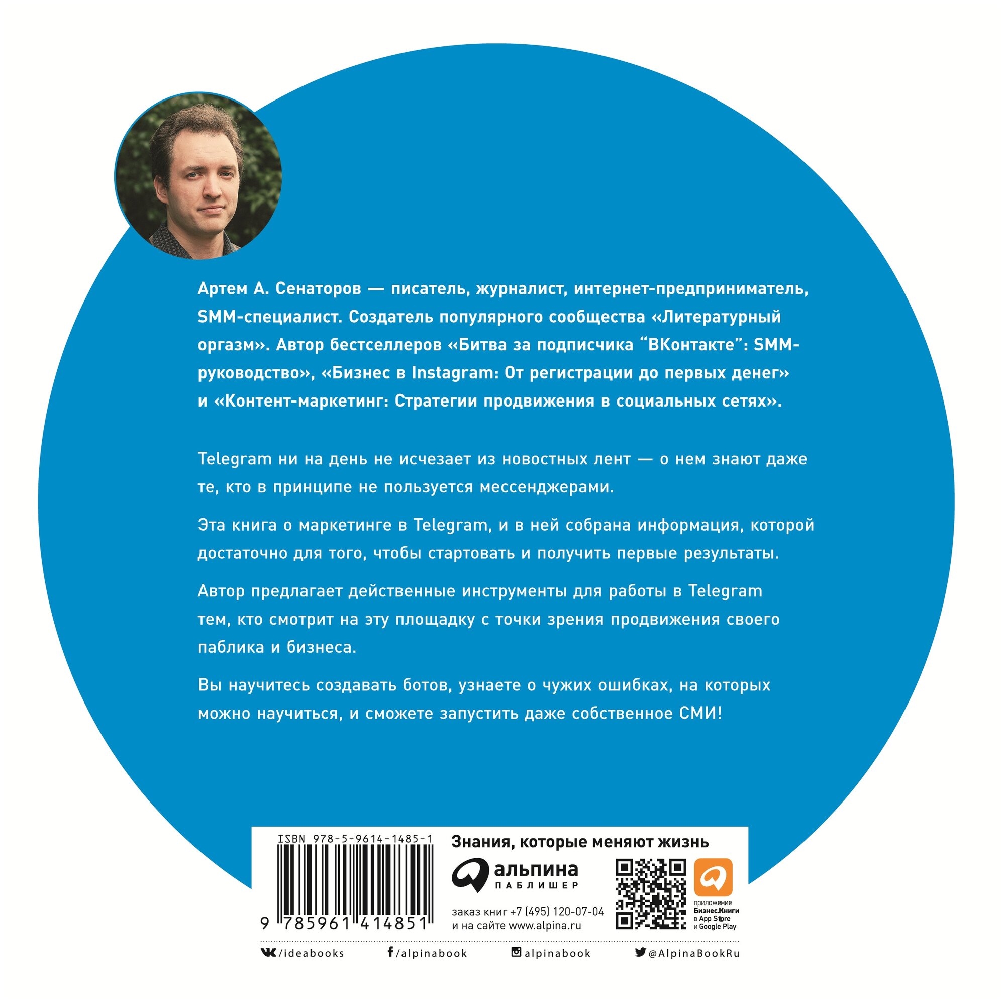 Telegram стал любимым мессенджером миллионов людей: он удобный, быстрый, в нем есть всё — от обычных чатов до настоящих СМИ. Что особенно ценно — Telegram не режет ленту и не скрывает важные публикации. Блокировки лишь подстегивают интерес к нему — как со стороны обычных пользователей, так и со стороны блогеров и компаний, которые хотят продвигать и продавать свои товары и услуги через Telegram.• Telegram ни на день не исчезает из новостных лент — о нем знают даже те, кто в принципе не пользуется мессенджерами. Эта книга о маркетинге в Telegram, и в ней собрана информация, которой будет достаточно для того, чтобы стартовать и получить первые результаты.• Артем А. Сенаторов рассказывает, как запустить канал (или, может, вам на самом деле нужен не канал, а супергруппа? — вы узнаете, чем они отличаются), что и как там публиковать, как продвигать свою площадку, как общаться с аудиторией, как программировать ботов, как покупать и продавать рекламу и зарабатывать с помощью Telegram.• Автор дает простые и практичные советы, но главное — он рассказывает о своем опыте ведения канала в Telegram («КаналГрибойэдова»), о своих успешных кейсах и ошибках, на которых стоит поучиться. Бонус: советы от владельцев еще двух популярных каналов: Павла Федорова («Паша и его прокрастинация») и Егора Апполонова («Хемингуэй позвонит»).• Вы найдете в книге действенные инструменты для продвижения своего паблика и бизнеса в Telegram. Вы научитесь создавать ботов, узнаете о чужих ошибках, на которых можно научиться, и сможете даже запустить собственное СМИ!Книга будет интересна и полезна блогерам, специалистам по SMM, руководителям больших и маленьких компаний.