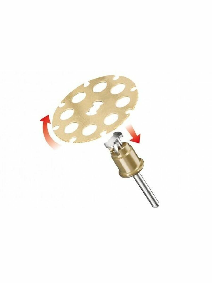 - Отныне запатентованная фирмой Dremel конструкция держателя и диска позволяет заменить насадку в три счёта: потянуть, надеть и повернуть.