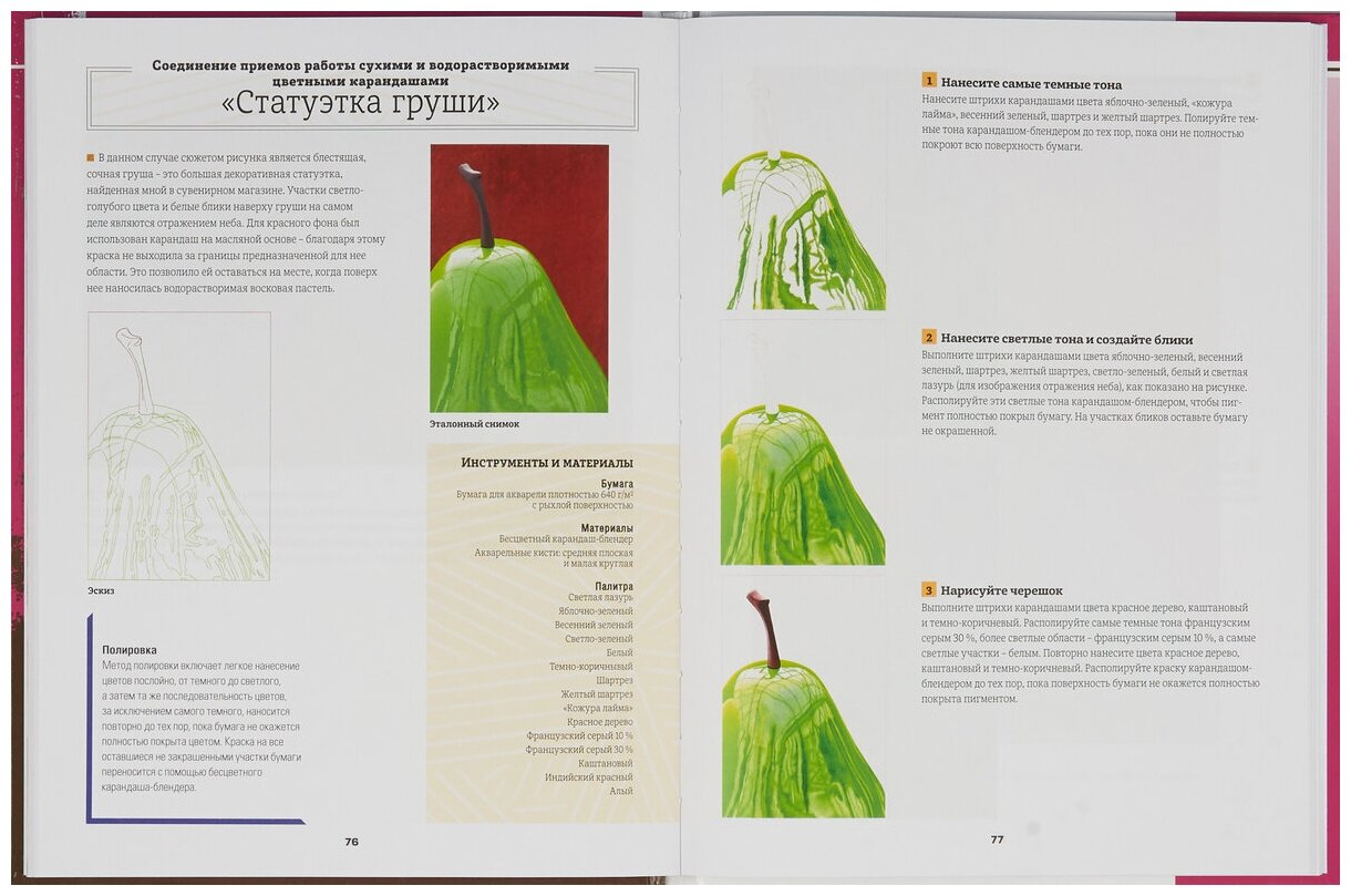 Как источник информации о разных техниках рисования цветными карандашами данная книга безусловно ценная, но для человека, имеющего лишь пачку цветных карандашей и желание рисовать она бесполезна.