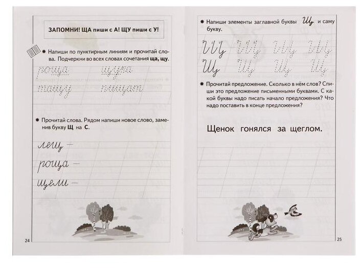 Задания в Прописях составлены по принципу от простого к сложному, что дает возможность постепенно овладевать навыком написания письменных букв, слогов и слов.