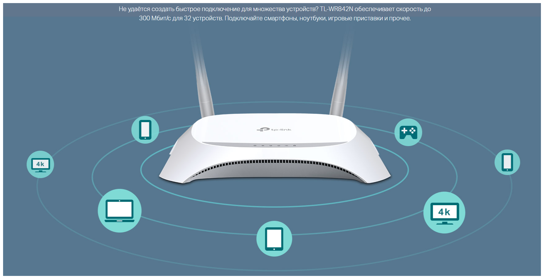 Роутер TP-LINK TL-WR842N подходит не только для домашнего, но и для офисного применения. Он позволяет создавать до четырех беспроводных сетей, а также до пяти каналов удаленного подключения VPN. Простое управление. Воспользовавшись утилитой на компакт-диске или веб-интерфейсом, пользователь может задать оптимальные настройки подключения, а также установить оптимальную пропускную способность канала для каждого устройства. Быстрое подключение.
