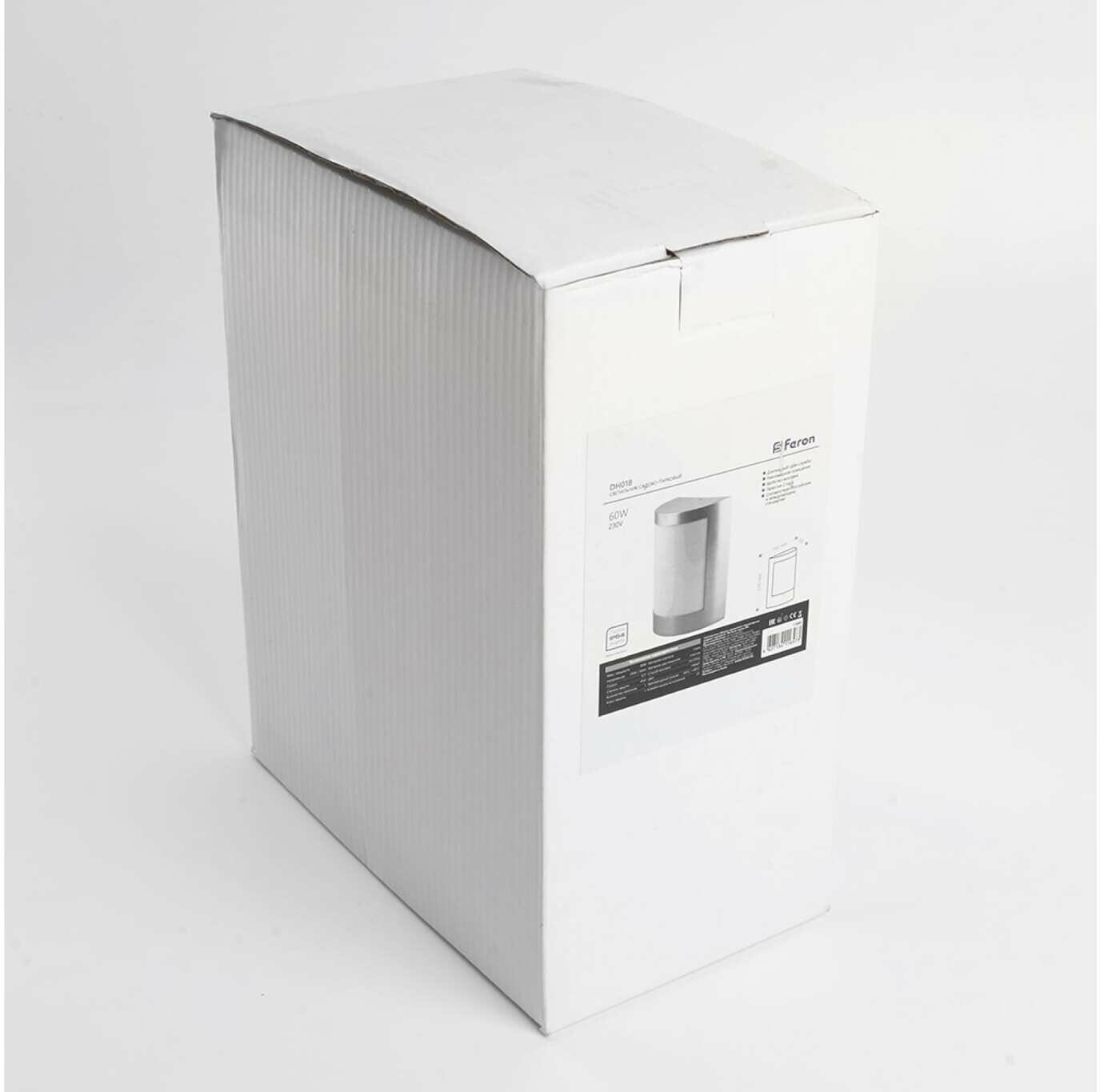 Светильник уличный настенный, серии «Техно», Feron DH018 - мощность 60W, - цоколь E27, - напряжение 230V, IP54, цвет серый, на стенуКорпус из нержавеющей стали и рассеиватель из высокопрочного пластика обеспечивают бесперебойную работу светильника на протяжении многих лет даже в неблагоприятных погодных условиях.