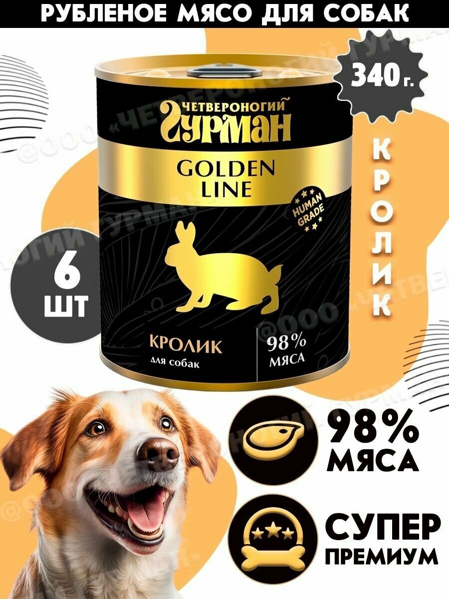 Влажный корм Четвероногий гурман Золотая линия для взрослых собак кролик натуральный в желе 340г (209109003)