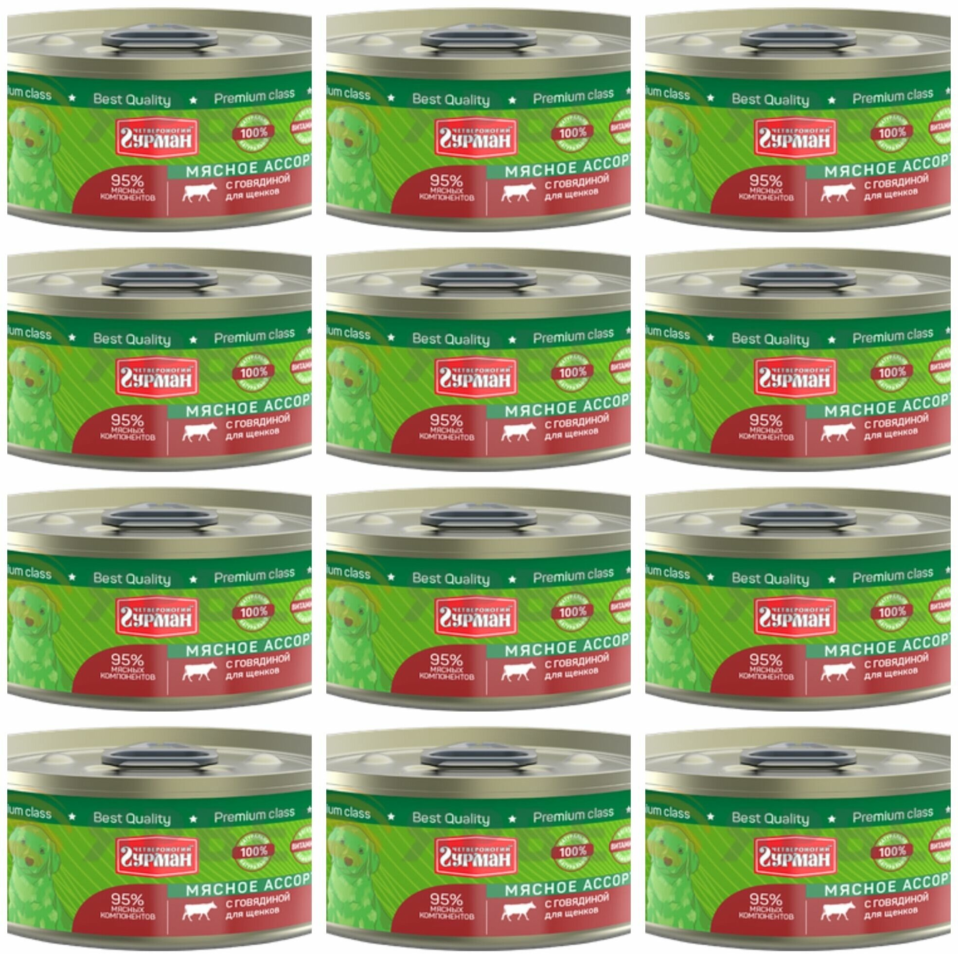 - Консервы для собак Четвероногий Гурман мясное ассорти с говядиной