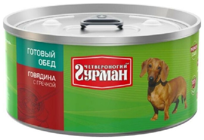 Консервы для собак Говядина с гречкой (цена за упаковку) - Готовые обеды "Четвероногий гурман" - это корма премиум класса для собак. В составе используются мясные компоненты высшего качества и гречневая или рисовая крупа в оптимальных пропорциях.