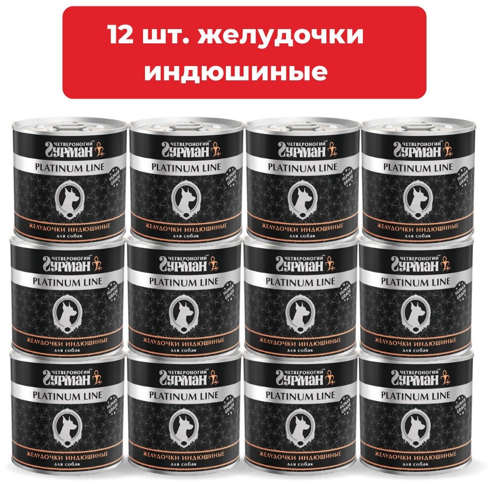 Влажный корм Четвероногий гурман Платиновая линия для взрослых собак желудочки индюшиные в желе 240г (210141002)