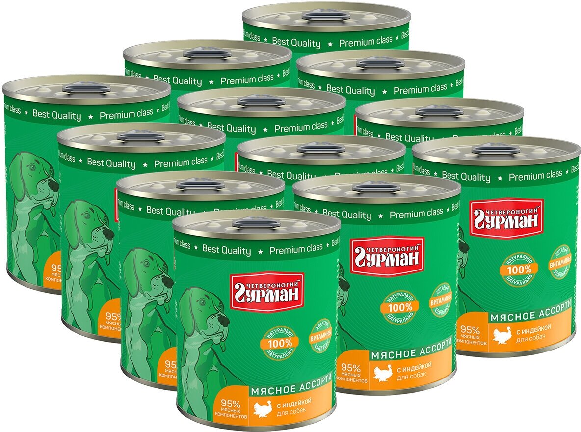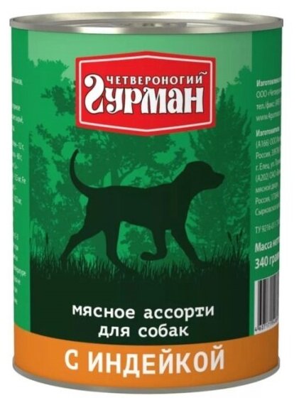 Влажный корм Четвероногий гурман Мясное ассорти для взрослых собак индейка 340г (103109005)