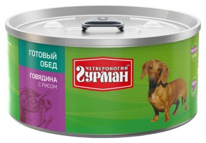 Четвероногий гурман консервы для собак :Четвероногий Гурман Готовый обед консервы для собак говядина с рисом 325г для животных. Готовый обед для собак говядина с рисом - полный сбалансированный диетический корм для собак, которые страдают болезнями желудочно-кишечного тракта. Также является отличным профилактическим средством при пищеварительных заболеваниях.