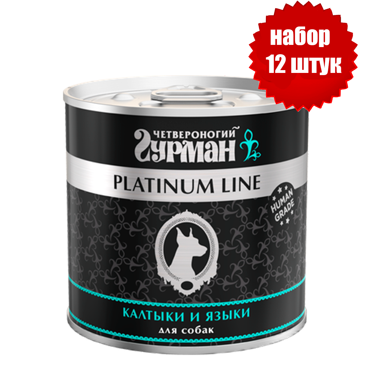 Влажный корм Четвероногий гурман Платиновая линия для взрослых собак калтыки и языки в желе 240г (210141004)
