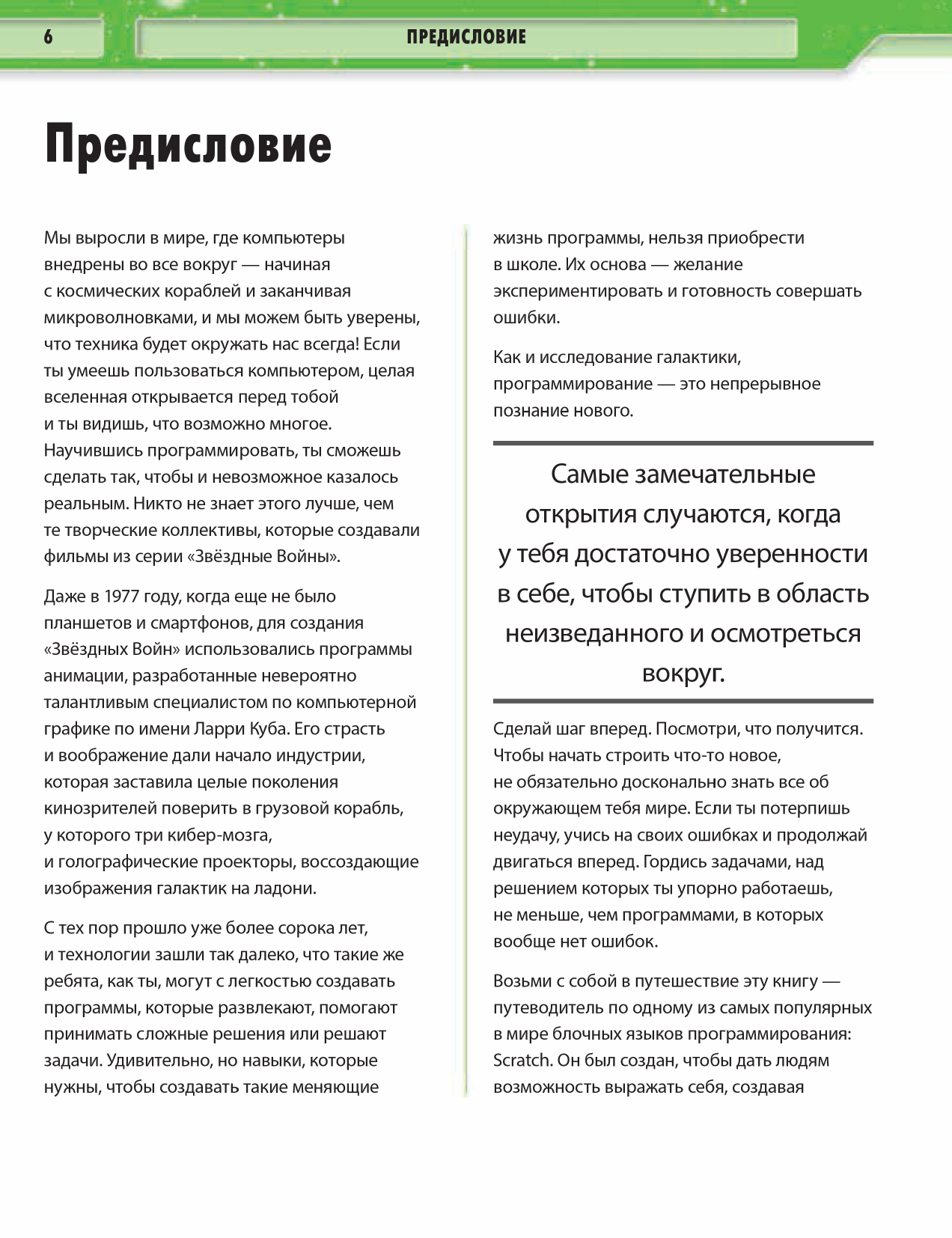 Единственная книга о создании компьютерных игр по вселенной STAR WARS. Учись программировать вместе с C-3PO и другими легендарными героями «Звёздных Войн»! Создай 6 собственных компьютерных игр с героями Звёздных Войн и разными захватывающими сюжетами. Книга научит тебя программировать на языке Scratch - самом популярном на сегодняшний день в мире языке программирования. Пошаговые инструкции с принтскринами - программирование под силу не только джедаям! Анимируй спрайты, создавай и совершенствуй свои компьютерные игры. Чтобы открыть для себя любимый мир «Звёздных Войн» на новом уровне и начать программировать, тебе понадобится только эта книга, компьютер с выходом в Интернет и желание. Ты сможешь работать на Scratch как онлайн (у тебя на платформе будет личный кабинет и возможность сохранять все свои наработки), так и оффлайн (если установишь программу на свой компьютер).