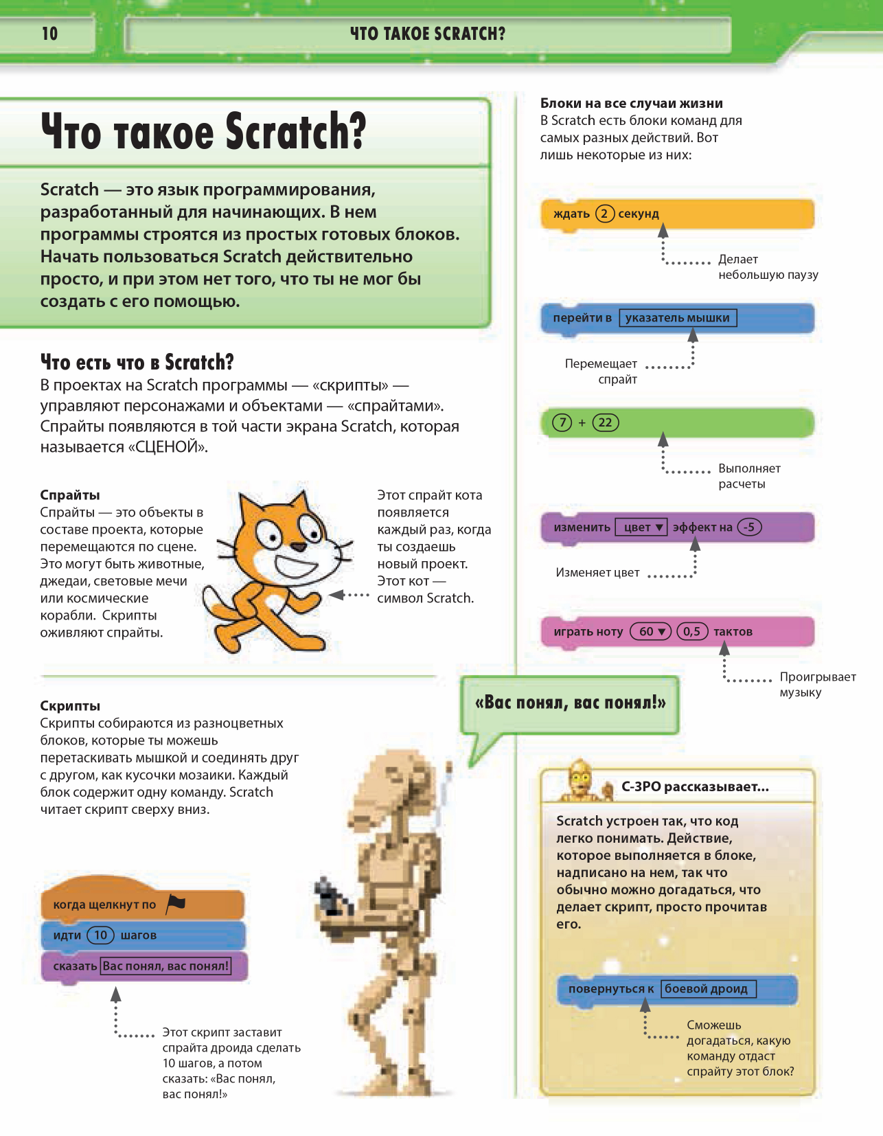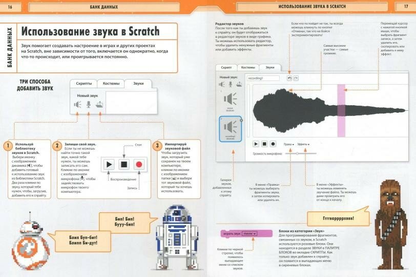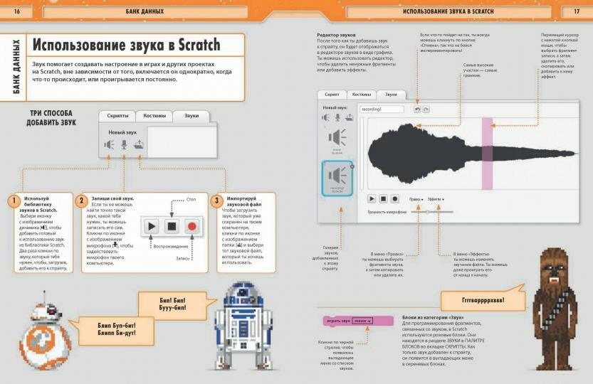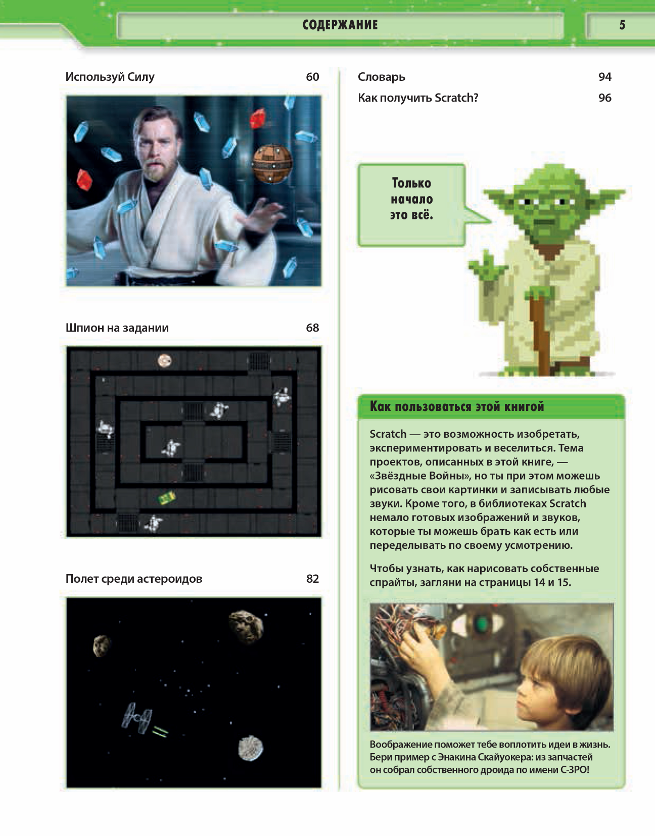Учись программировать на Scratch вместе с C-3PO и другими легендарными героями "Звёздных Войн"! Создай шесть отличных компьютерных игр и брось вызов друзьям - кто из вас наберёт больше очков? Стань магистром Scratch - анимируй спрайты, создавай и совершенствуй свои компьютерные игры.