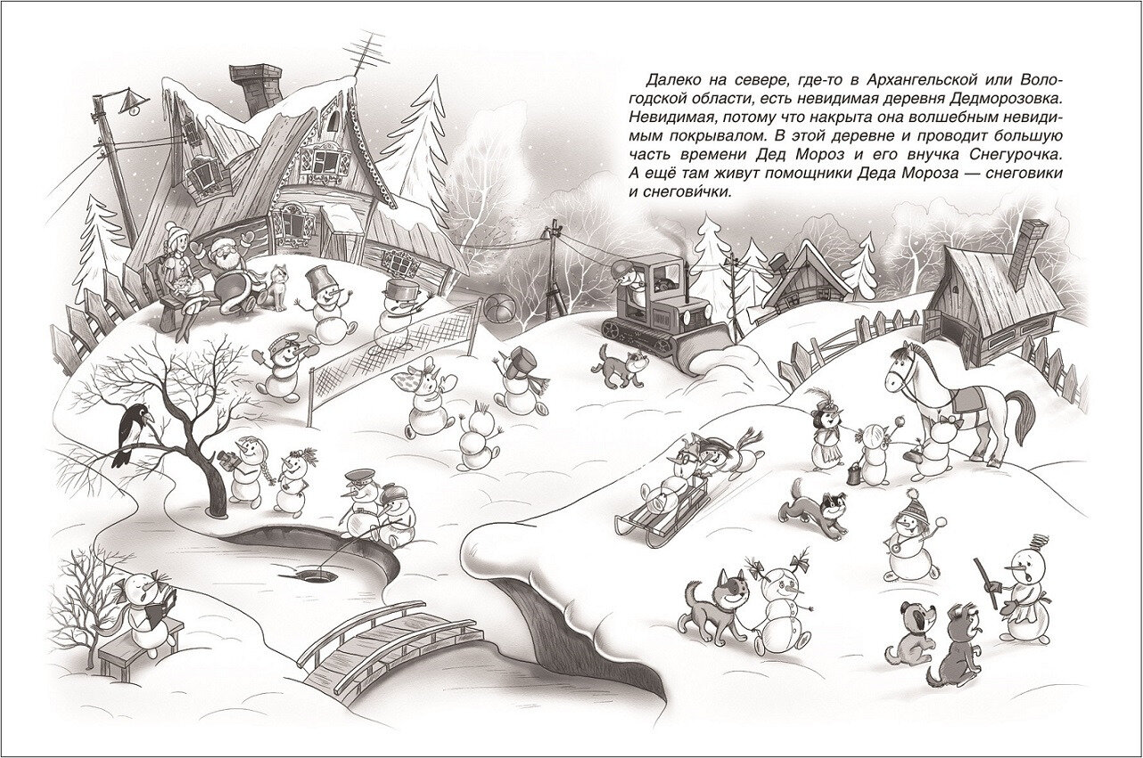 Росмэн Усачев А. Все про Дедморозовку Все истории. В невидимой северной деревне Дедморозовке живут Дед Мороз, его внучка Снегурочка и их помощники — снеговики и снеговИчки. Все они вечно что-то выдумывают и изобретают, играют на музыкальных инструментах, занимаются спортом и, конечно же, развозят детям новогодние подарки. В книгу вошли пять сказочных повестей о веселых приключениях Деда Мороза, Снегурочки и их помощников.