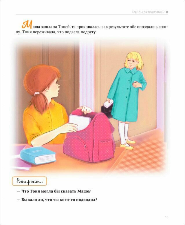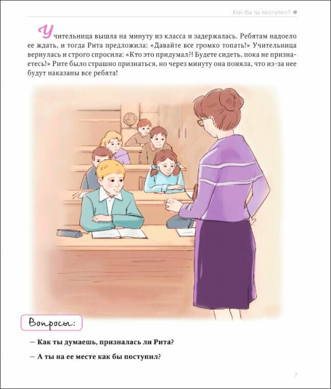 Жаль, что ребенок уже вырос. А то обязательно купила бы. Книга очень доступно написана, хорошо иллюстрирована. Ее можно читать и с родителями, и в классе, и самостоятельно. Ситуации разбираются самые что не на есть жизненные. Только, конечно, это для младшего школьного возраста, а не для среднего. И для тех детей, кто любит такой жанр: сухо и по существу. Для тех, кому важна эмоциональная вовлеченность, тому больше подойдут рассказы Носова, Драгунского и т.п.