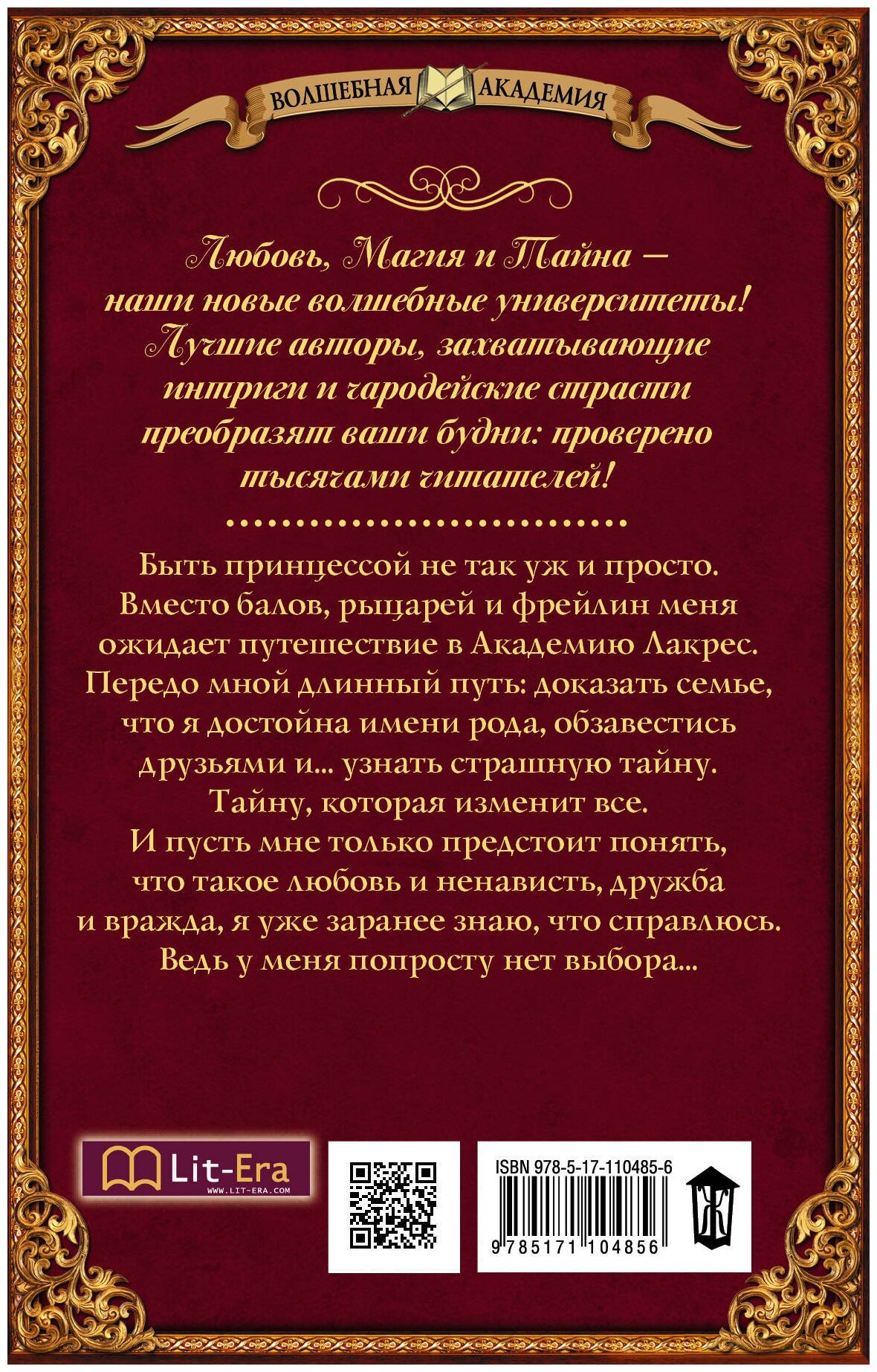Быть принцессой не так уж и просто. Вместо балов, рыцарей и фрейлин меня ожидает путешествие в Академию Лакрес. Передо мной длинный путь: доказать семье, что я достойна имени рода, обзавестись друзьями и... узнать страшную тайну. Тайну, которая изменит все.