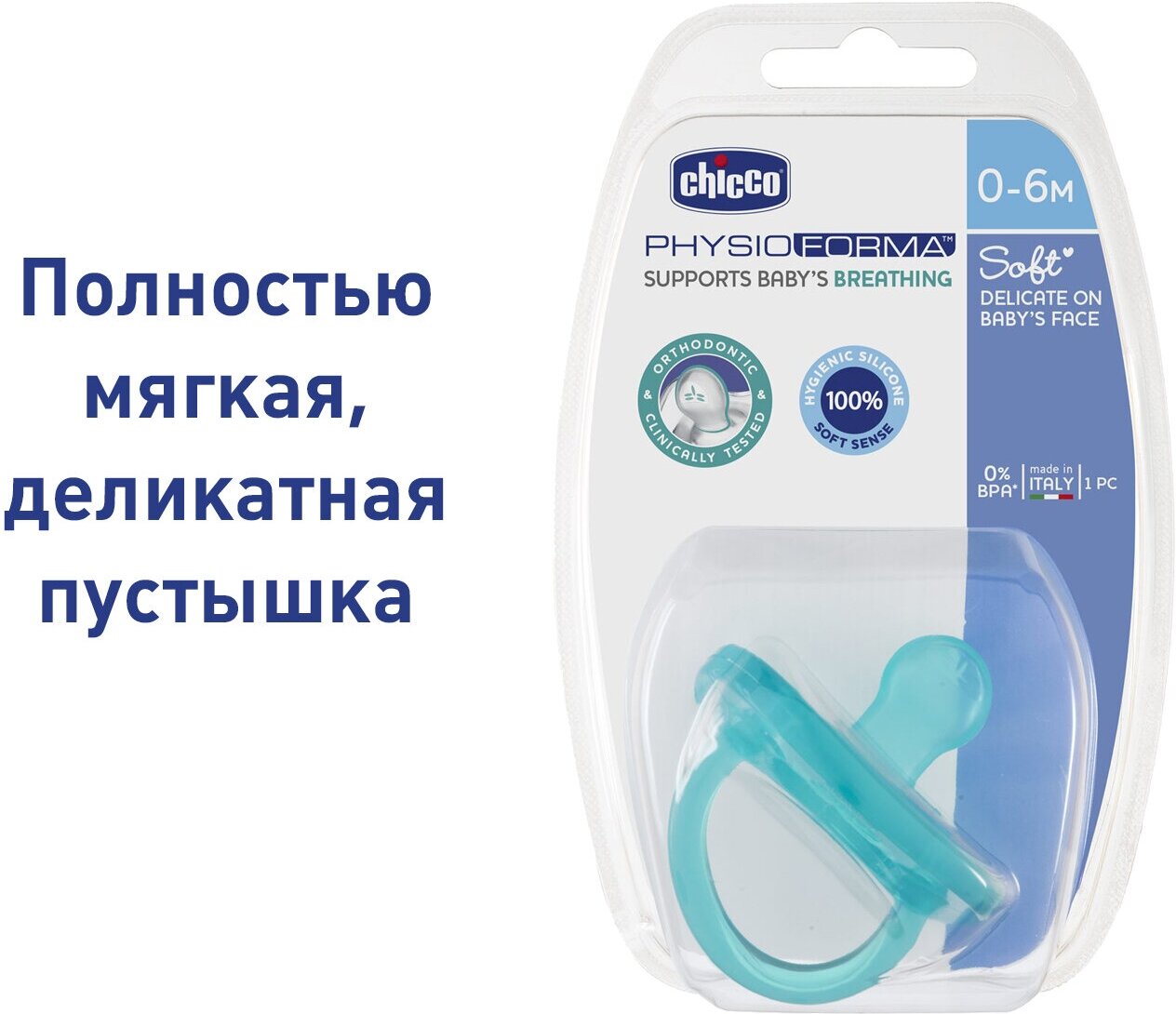 Пустышка Chicco Physio Soft силиконовая 0-6 мес. 1 шт. голубой (310410139)