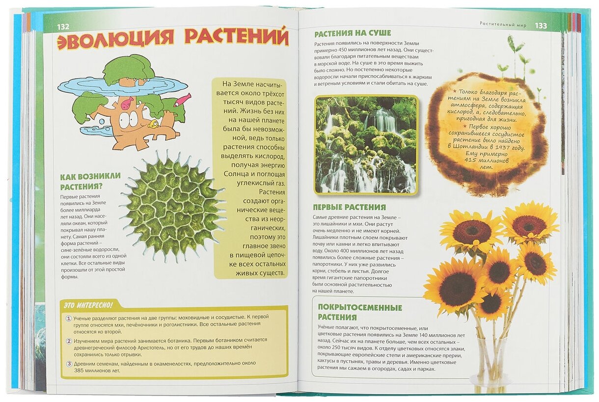 Содержательная энциклопедия, много разделов о самых разных сферах нашего мира, много ярких рисунков, шрифт крупный, удобно читать. Главное, книга вызывает интерес у ребенка и желание самому её почитать и узнать новое. Твёрдая глянцевая обложка и хороший переплет, страницы не торчат и не выпадают. Ставлю этой энциклопедии твердых пять звёзд, красота и польза в одной книге.