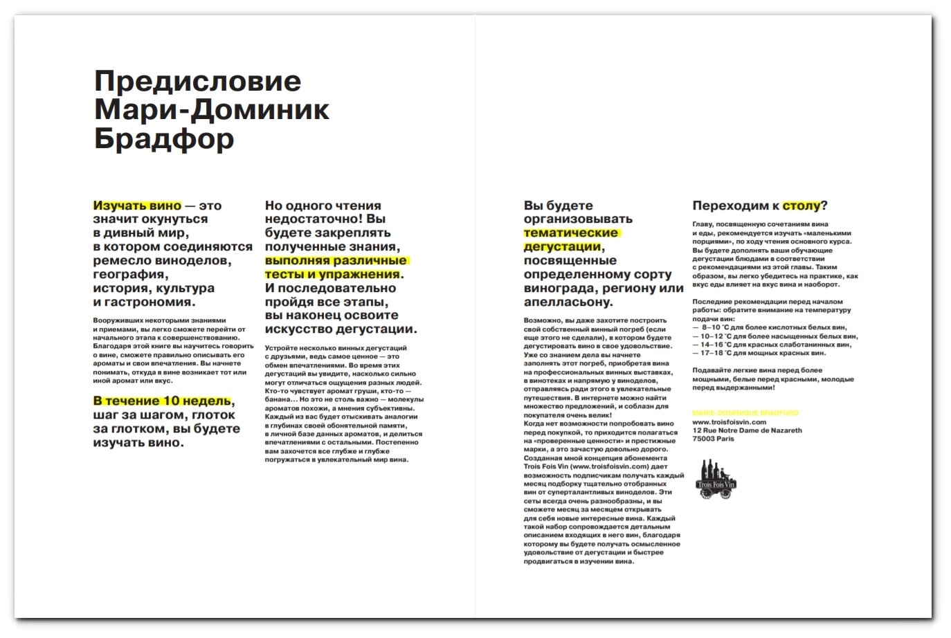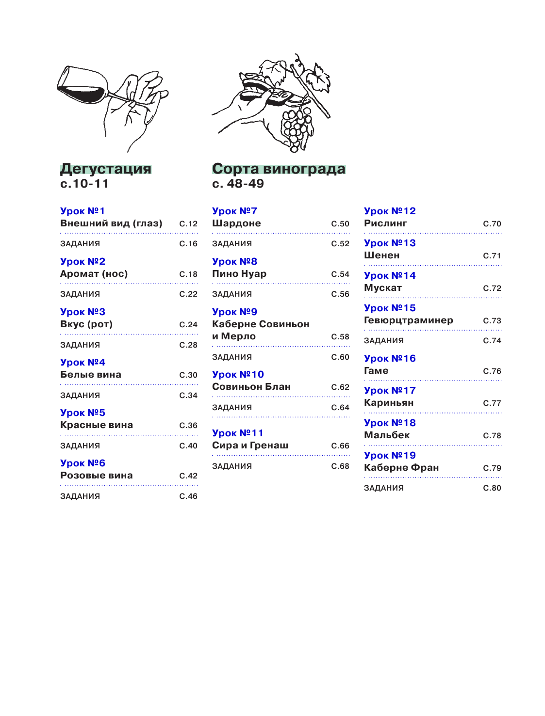Для новичка-любителя эта книга станет отличным началом для погружения в сферу энологии. Написано доходчиво, с многочисленными иллюстрациями. Более того, это не просто книга, это рабочая тетрадь, с которой вы можете ходить по винным барам в поисках нужного вина и дегустировать. Я как учитель могу с уверенностью сказать, что с точки зрения методики книга выстроена верно: дана теория, потом практика на закрепление. Причём закрепления знаний не только теоретического характера, но и практического. Если систематически изучать книгу, выполнять задания, то к концу вы определено различите мальбэк от темпранильо, будете знать об особенностях региональных стилей, а также, что примитиво и зинфандель - это не два разных сорта винограда, а один.