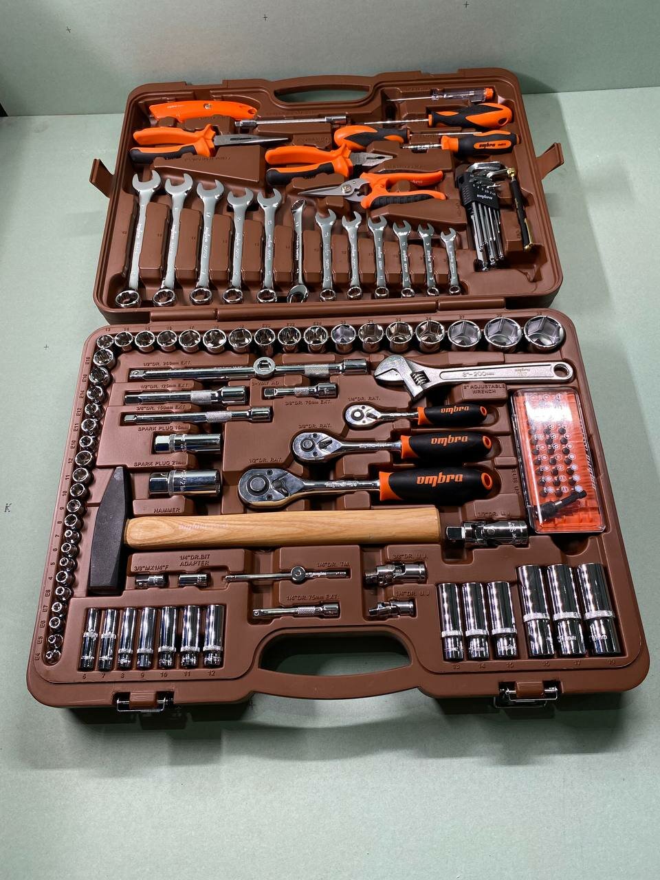OMBRA OMT131S — профессиональный набор инструментов, насчитывающий 131 предмет. Предназначен для ремонта и технического обслуживания автомашин, мотоциклов, станков и другого оборудования. В комплекте представлены три типа торцевых головок (типоразмер 1/4, 1/2, 3/8) и трещоточных рукояток к ним. К ним в дополнение предусмотрен инструмент общего назначения (пассатижи, отвертки, ножницы и др.). Набор поставляется в прочном кейсе.