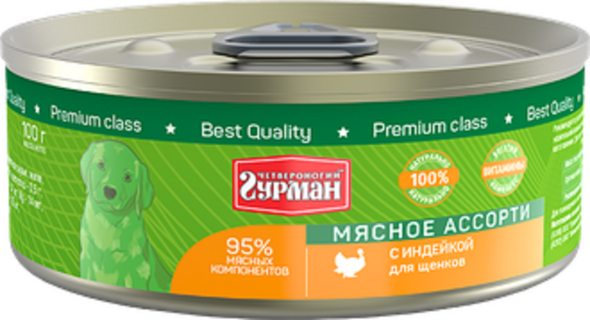 Влажный корм Четвероногий гурман Мясное ассорти для щенков индейка 100г (103101015)