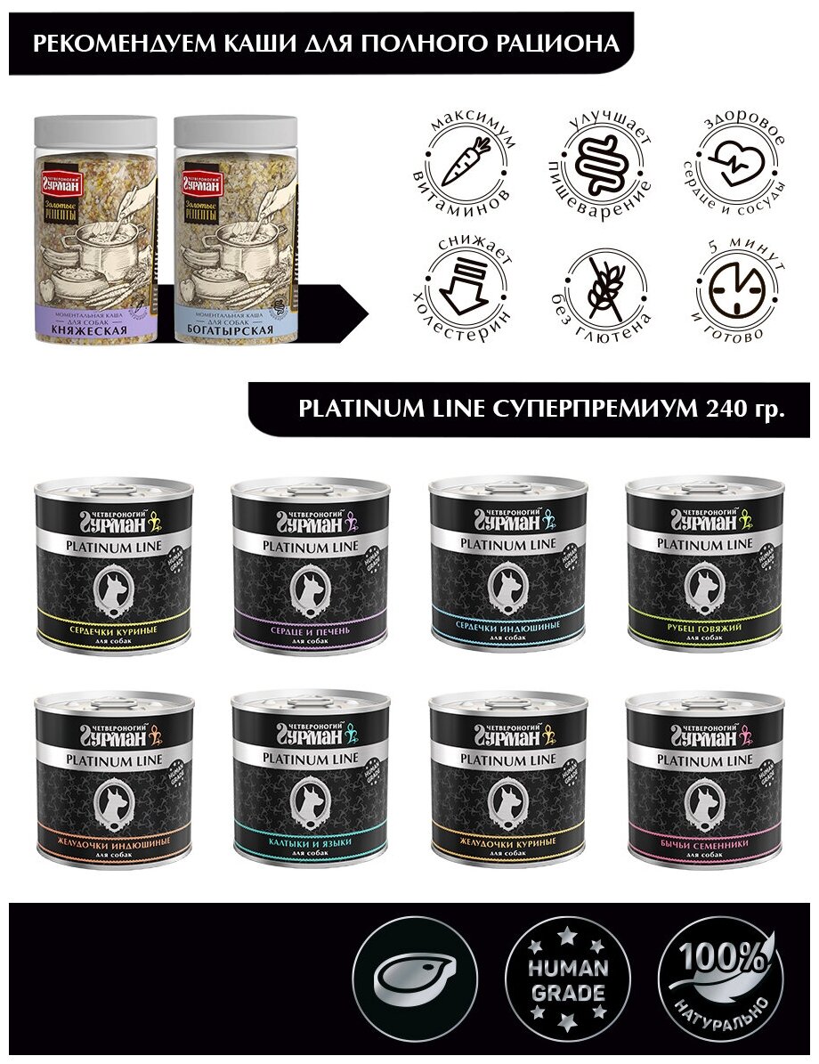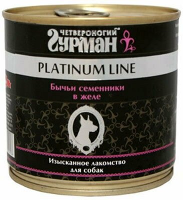 На сегодняшний день товар «Влажный корм Четвероногий гурман Платиновая линия для взрослых собак бычьи семенники в желе 240г (210141001)» можно купить с кешбеком в 1 магазине: Vprok (Перекресток)