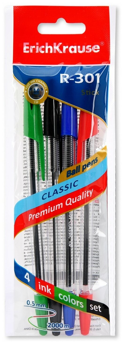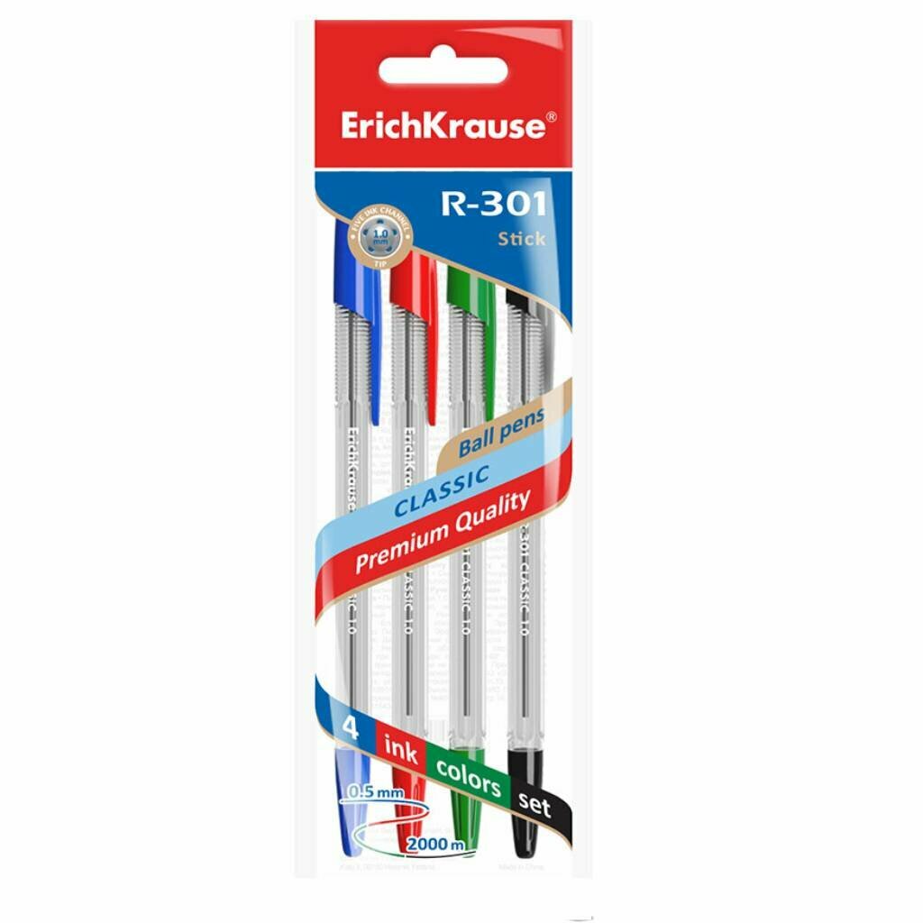 Набор ручек шариковых Erich Krause R-301 Classic Stick 1.0 4 шт. (44593)
