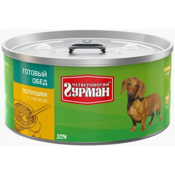 Четвероногий гурман консервы для собак :Четвероногий Гурман Готовый обед консервы для собак потрошки с гречкой 325г для животных. Консервы для собак - Четвероногий гурман "Готовый обед потрошки с гречкой".
