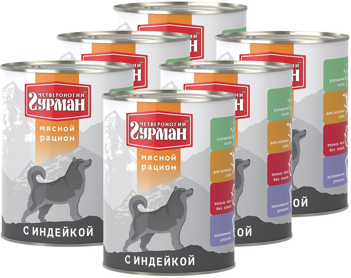 Влажный корм Четвероногий гурман Мясной рацион для взрослых собак индейка 850г (104113004)