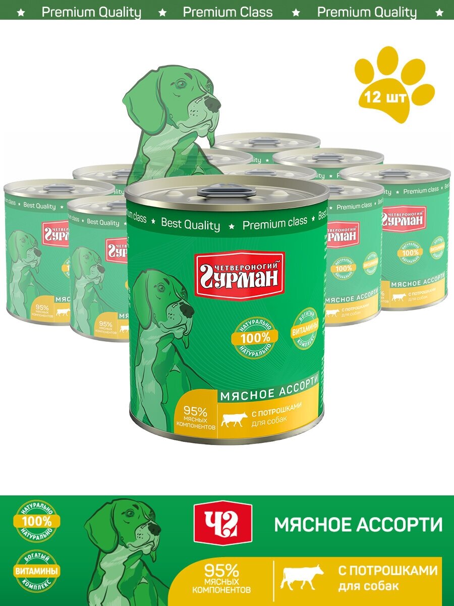 Влажный корм Четвероногий гурман Мясное ассорти для взрослых собак потрошка 340г (103109010)