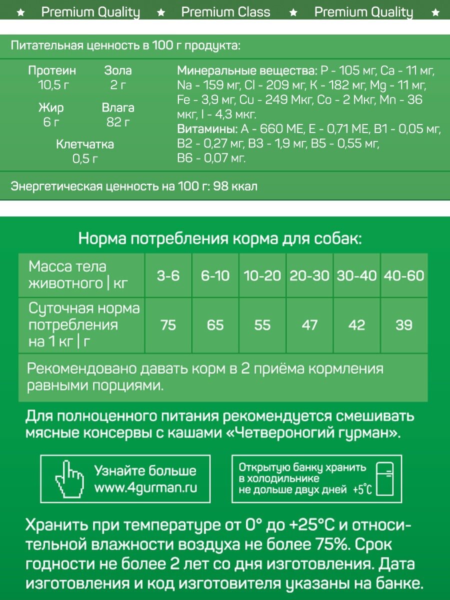 Влажные корма, консервы ЧЕТВЕРОНОГИЙ ГУРМАН »