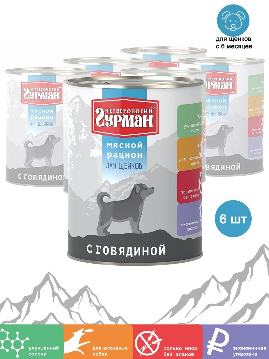 Влажный корм Четвероногий гурман Мясной рацион для щенков мясное ассорти 850г (104113001)
