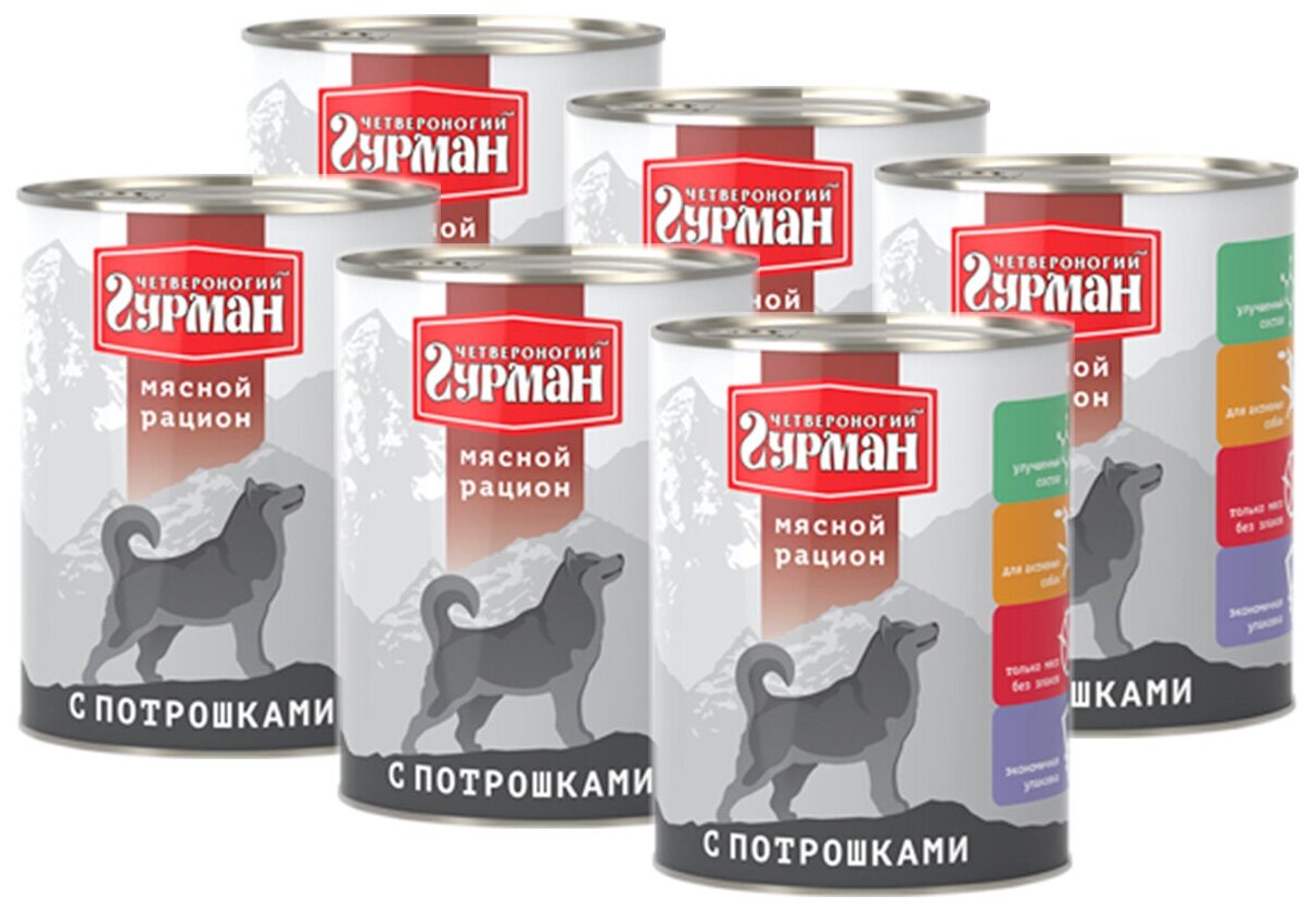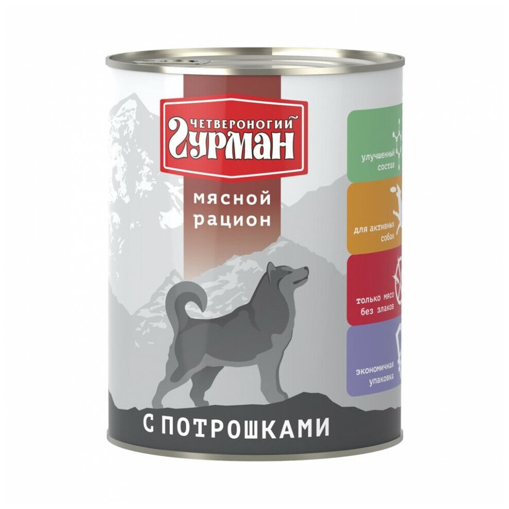 Влажный корм Четвероногий гурман Мясной рацион для взрослых собак потрошка 850г (104113006)