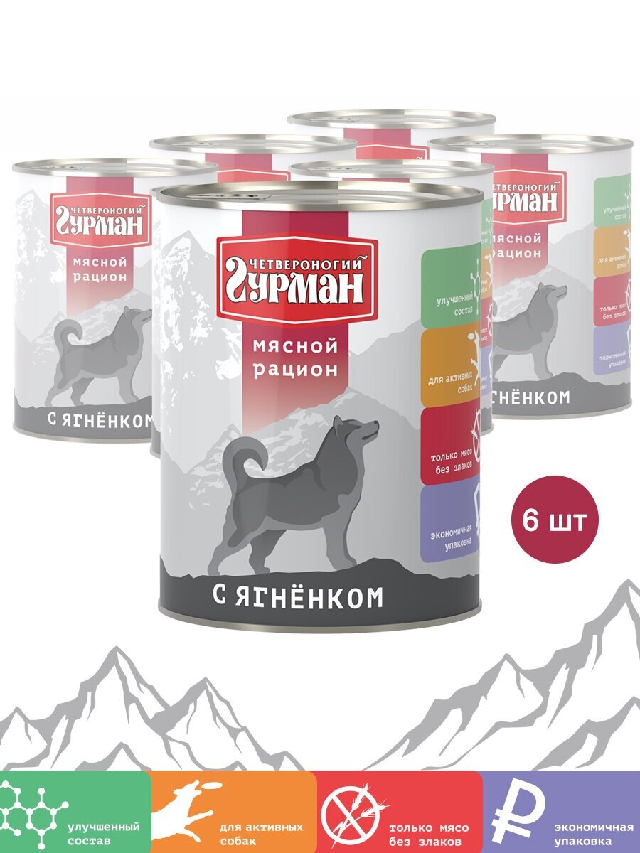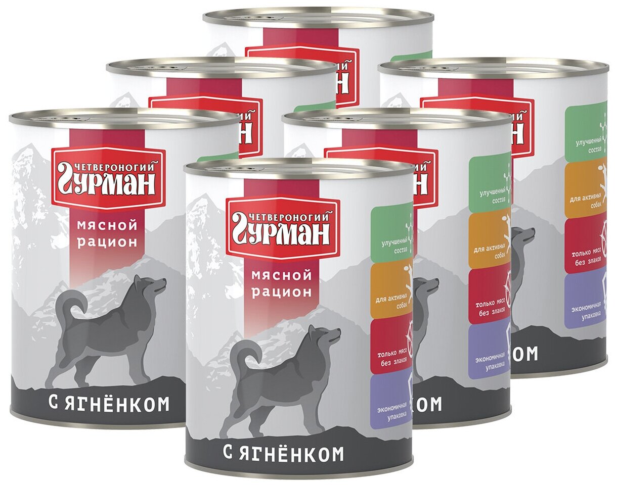 Влажный корм Четвероногий гурман Мясной рацион для взрослых собак баранина 850г (104113002)