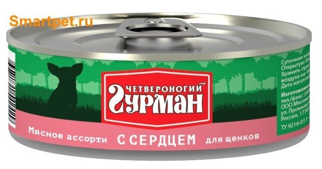 Влажный корм Четвероногий гурман Мясное ассорти для щенков сердце 100г (103101019)