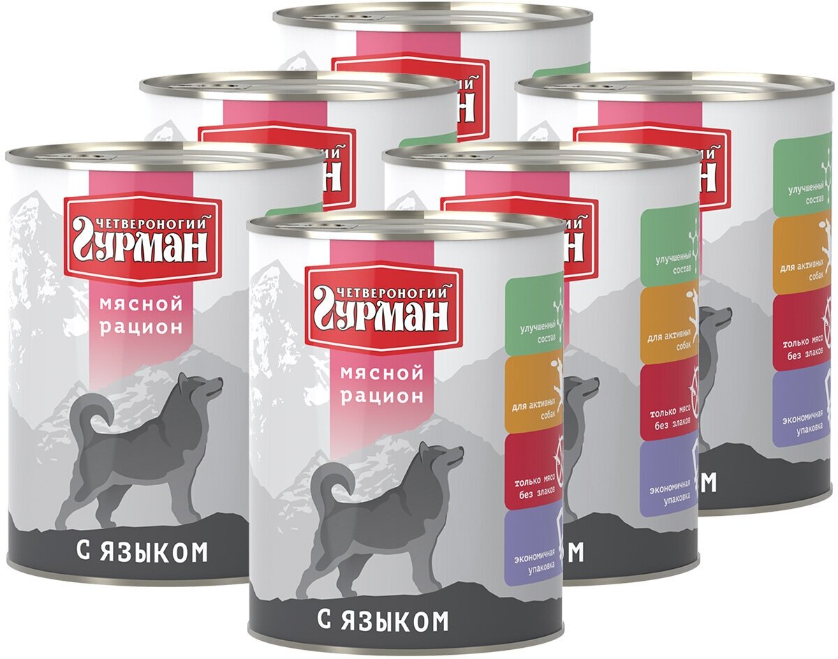 Влажный корм Четвероногий гурман Мясной рацион для взрослых собак язык 850г (104113008)