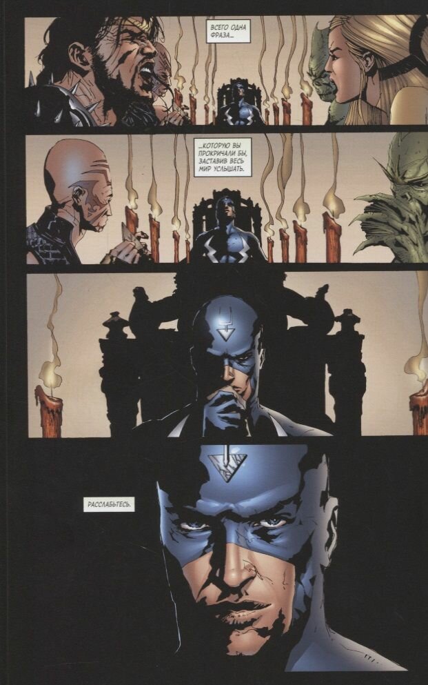 окружение и персонажей из черного цвета, а колористы наполняют нужные места другими цветами. По типу рисунка комикс похож на "Темных мстителей" Бендиса.