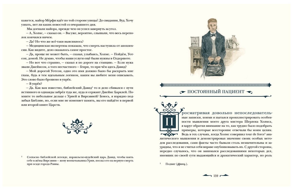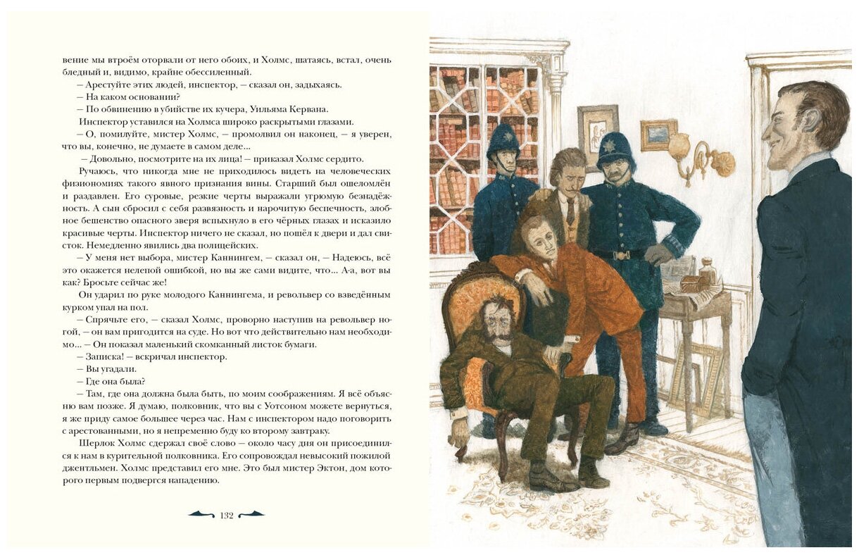 Ватсон? Почему Ватсон? Спрашивала себя и артиста Ливанова я в детстве, потому что в моей книге он был Уотсоном – да так и остался. Очень рада, что Нигма выпустила четвертый том с рассказами о Шерлоке Холмсе и не стала заморачиваться с новой интерпретацией знакомых с детства рассказов. Я не против новых переводов, язык тоже эволюционирует, но таким как я (уверена, нас не мало) приятнее ностальгировать и читать строки, знакомые с детства. И дать возможность нашим детям тоже ознакомиться с любимыми историями. Как всегда иллюстрации серии на высоте – очень похвальные работы молодого художника Пахомова, который не опускает планку с каждой новой книгой.