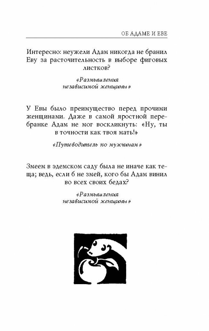 Сборник афоризмов и цитат из газетной колонки американской писательницы. Саркастично, иронично и очень метко Хелен Роуленд и несколько других известных женщин высказываются о мужчинах, браке и любви. Хорошее настроение с капелькой мудрости.