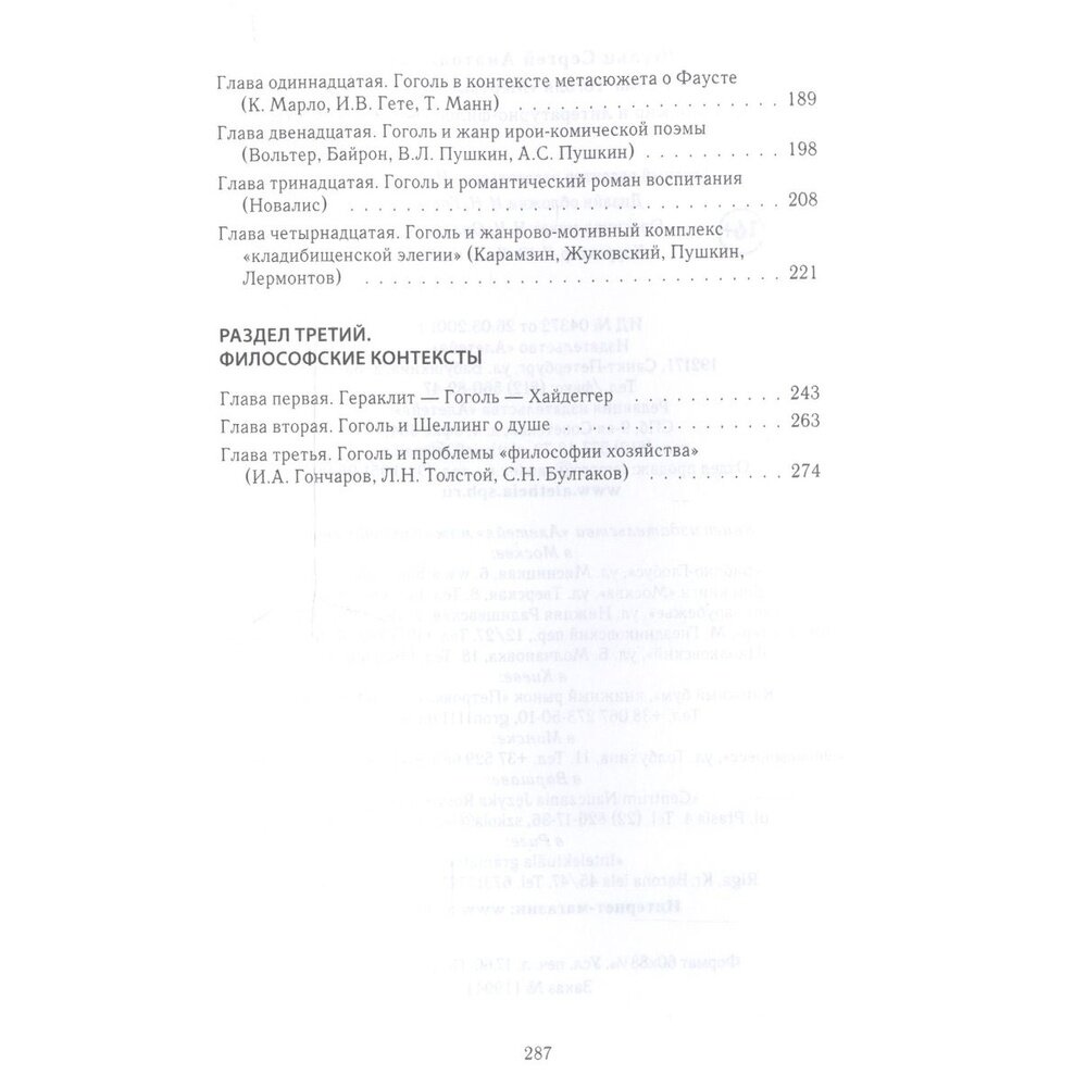 В книге ставится проблема герменевтического истолкования "внутреннего мира" (в значении, восходящем к Д.С.Лихачеву) поэмы Н.В.Гоголя "Мертвые души" через ее рассмотрение в различных литературных и метафизических контекстах России и Западной Европы. В русле идей М.М.Бахтина исследуются связи поэмы с различными жанровыми (а также сюжетными и мотивными) модификациями - фольклорными, античными, ренессансными, барочными, просветительскими, романтическими и др., с философией Гераклита, Ф.Шеллинга, С.Н.Булгакова, М.Хайдеггера.