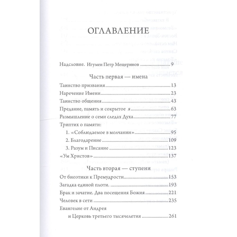 "Наречение имени" нарушает негласную установку, присущую культуре постмодерна: анонимность Бога, безымянность Его проявлений в мире. Поиск личного имени Божия, запечатленного повсюду, органично соединяет все три, столь непохожие раздела книги: "Имена", "Ступени", "Лица". Сквозной мотив, связывающий всё разнообразие тем и сюжетов между собой, можно назвать "ключом общения". Автор по-своему развивает евангельскую тему призвания к общению (койнонии), идет ли речь об опыте души, причастной таинству "обмена благословениями", или о темах, неотъемлемых от "духа времени", или о приношении памяти ушедшим друзьям, чьи лица читатель ощущает как живые.