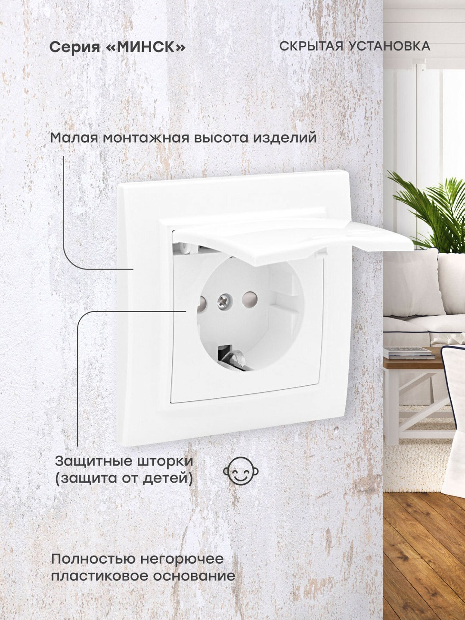 Розетка 1 пост EKF Минск, 16А с заземлением, с защитной шторкой с крышкой, белый. Универсальная и наиболее популярная серия электроустановочных изделий 'EKF PROxima'. Подходит для использования в любых типах помещений. Включает весь необходимый набор изделий для решения максимально широкого спектра задач по электроустановке.Электрическая розетка – это разъем для подключения электрических приборов с помощью вилки. Защитное заземление розетки обеспечивает защиту электроустановки и оборудования, а также защиту людей от воздействия тока. В каждом доме есть достаточное количество приборов, заземление которых обязательно. Как правило, это устройства с большой потребляемой мощностью — электроплиты, стиральные машины и т. д. Обычная розетка имеет два контакта (фаза и рабочий ноль). Розетка с заземлением имеет третий контакт, соединенный с заземляющим проводом. Через него в землю отводится статическое электричество, а также опасные напряжения и токи, возникающие в приборах в результате пробоя на корпус. Схемы подключения розеткиПрежде всего, отключите автомат в электрощите помещения, где Вы будете устанавливать розетку. Приступать к работе нужно только после того, как Вы убедитесь, что в сети отсутствует напряжение!Для начала проложите провод, установите подрозетник и заведите в него проводник. Теперь непосредственно схема подключения. При монтаже изделий, на каждый контакт от одной, до другой розетки присоединяются провода одного цвета. На третий контакт подключается только заземляющий.Способов подключения всего два:- Прямое подключение.- Параллельное подключение.При прямом подключении розетки подсоединяются одна за другой. При параллельном подключении – их разветвляют с помощью распределительных коробок. Такой вид монтажа применяют, когда недалеко от одной розетки нужно установить еще одну. К примеру, на другой стороне стены в соседнем помещении.