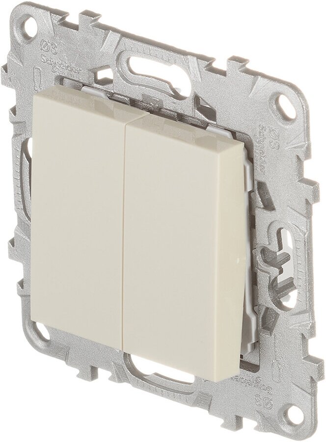 Двухклавишный выключатель Unica NEW Schneider Electric для встроенного монтажа, цвет бежевый, в рамку (механизм). Предназначен для сетей до 250 В на ток до 10 А. Выключатель Unica New прост в установке и удобен в применении. Изготовлен из высококачественного ABS пластика. Сделано в Испании.