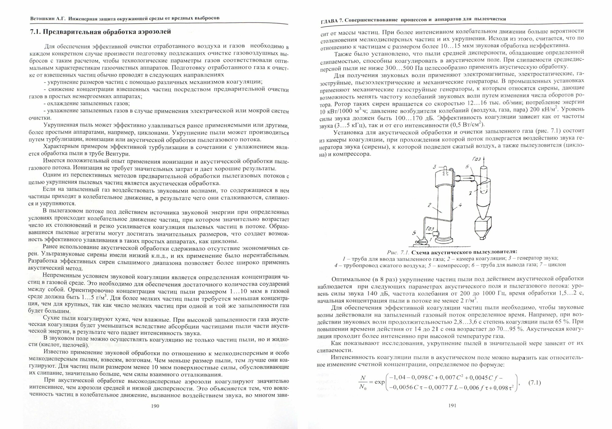 Рассмотрены основные процессы и аппараты технологии защиты атмосферы от выбросов аэрозолей с использованием различных методов и способов: гравитационные, центробежные, мокрые, электрические; выбросов вредных газов и паров, основанные на использовании различных механизмов очистки газовых выбросов: абсорбции, адсорбции, каталитической конверсии, термической обработки. Приведены методики расчета и проектирования аппаратов пылеочистки, включая пылеосадительные камеры, циклоны, вихревые аппараты, фильтры, мокрые скрубберы, электрофильтры, а также основы проектирования аппаратов защиты атмосферы от вредных газов и паров: абсорберов и адсорберов, каталитических реакторов, теплообменников-конденсаторов.