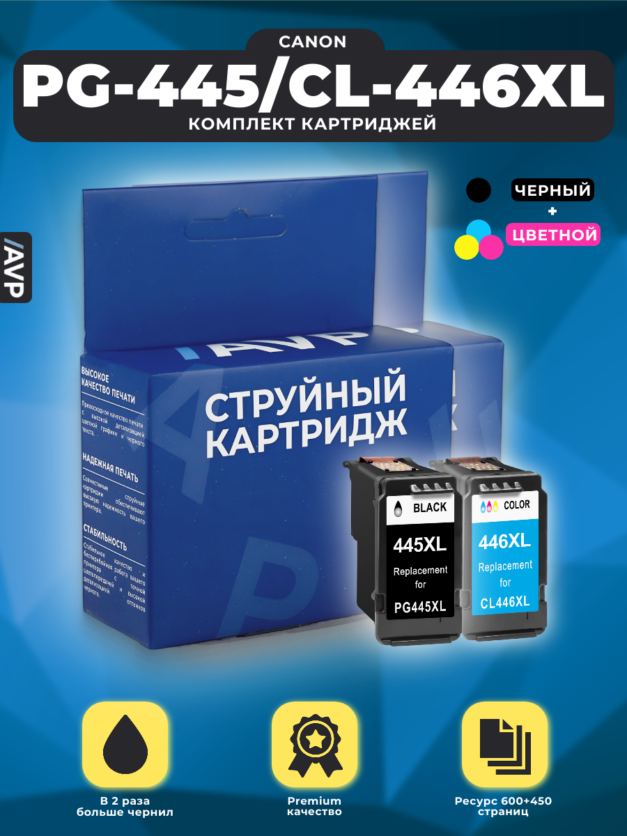 Набор Canon PG-445/CL-446 состоит из одного черного картриджа объемом 8 мл и одного цветного картриджа объемом 8 мл, что представляет собой полный набор чернил для принтера, обеспечивающий удобство печати и экономию.