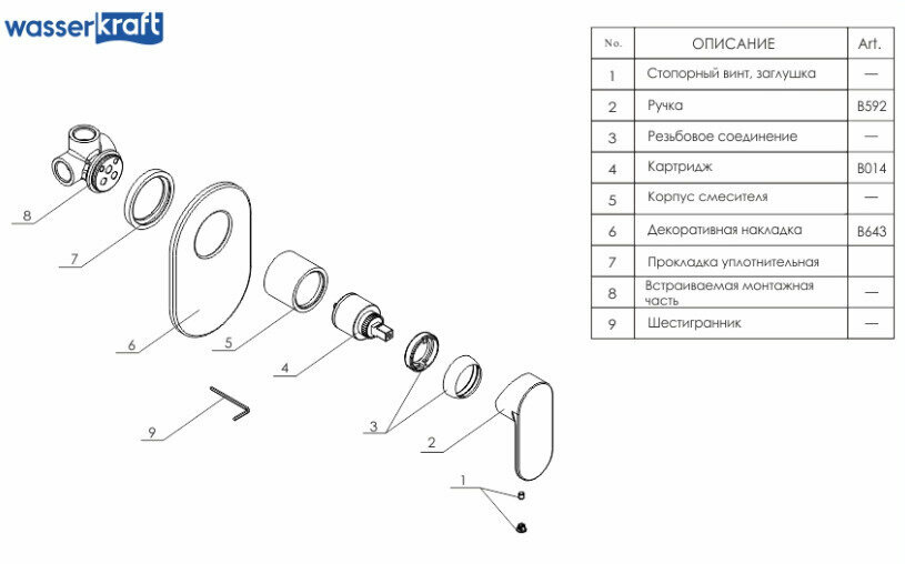 | ВКоробке | Смеситель - 1 шт. Монтажная часть - 1 шт. Инструкция - 1 шт. |